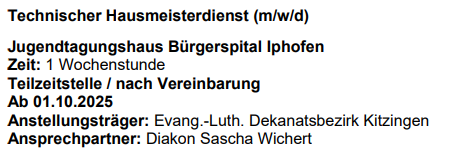 Stellenausschreibung 26 Aug 2025 Von Paul Häberlein Weitere Information finden Sie in der Anlage ! Weiterlesen … Stellenausschreibung